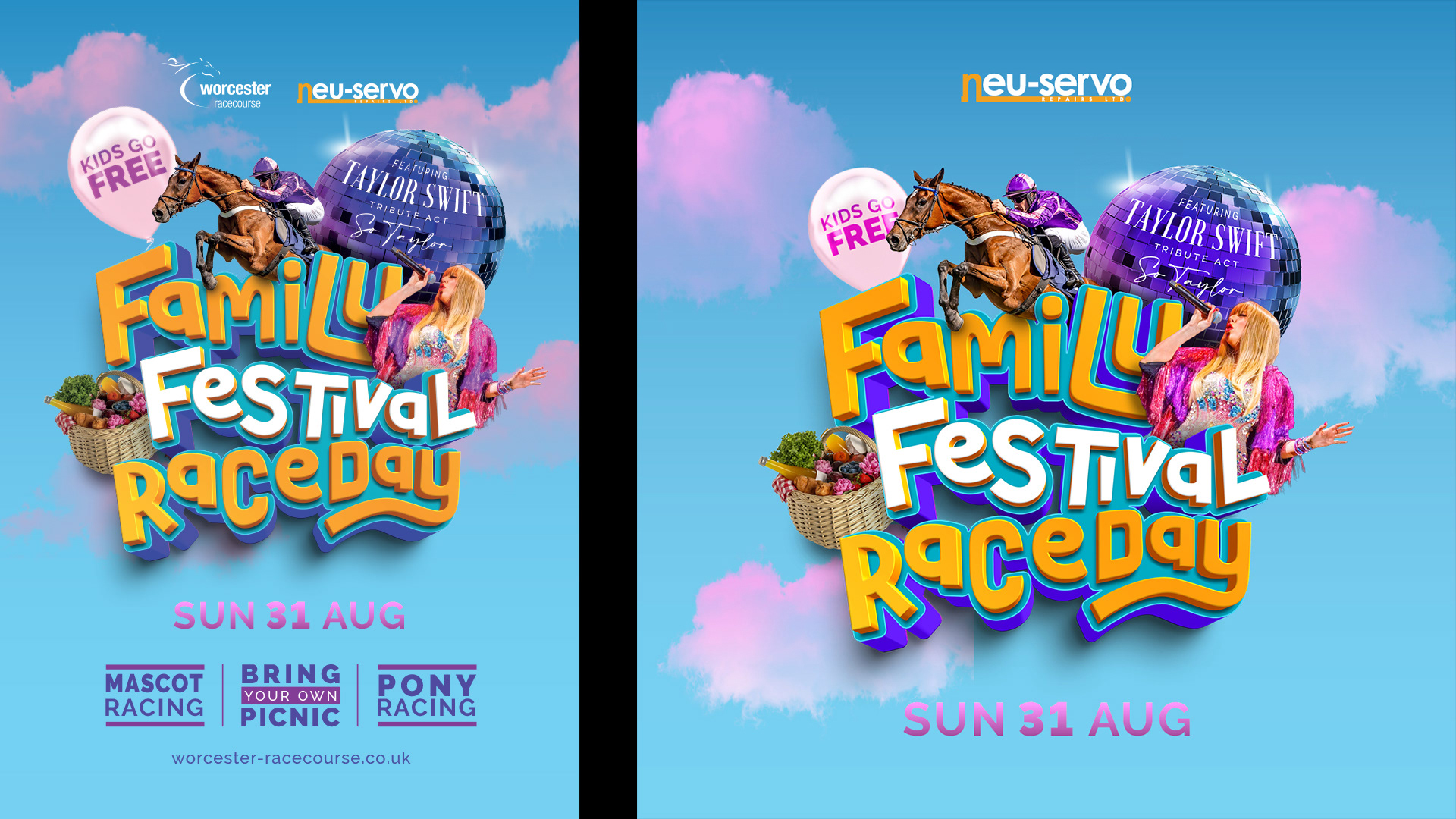 Family Festival Raceday concept (designed in collaboration with Arena Racing design team) and campaign rollout for Worcester Racecourse.