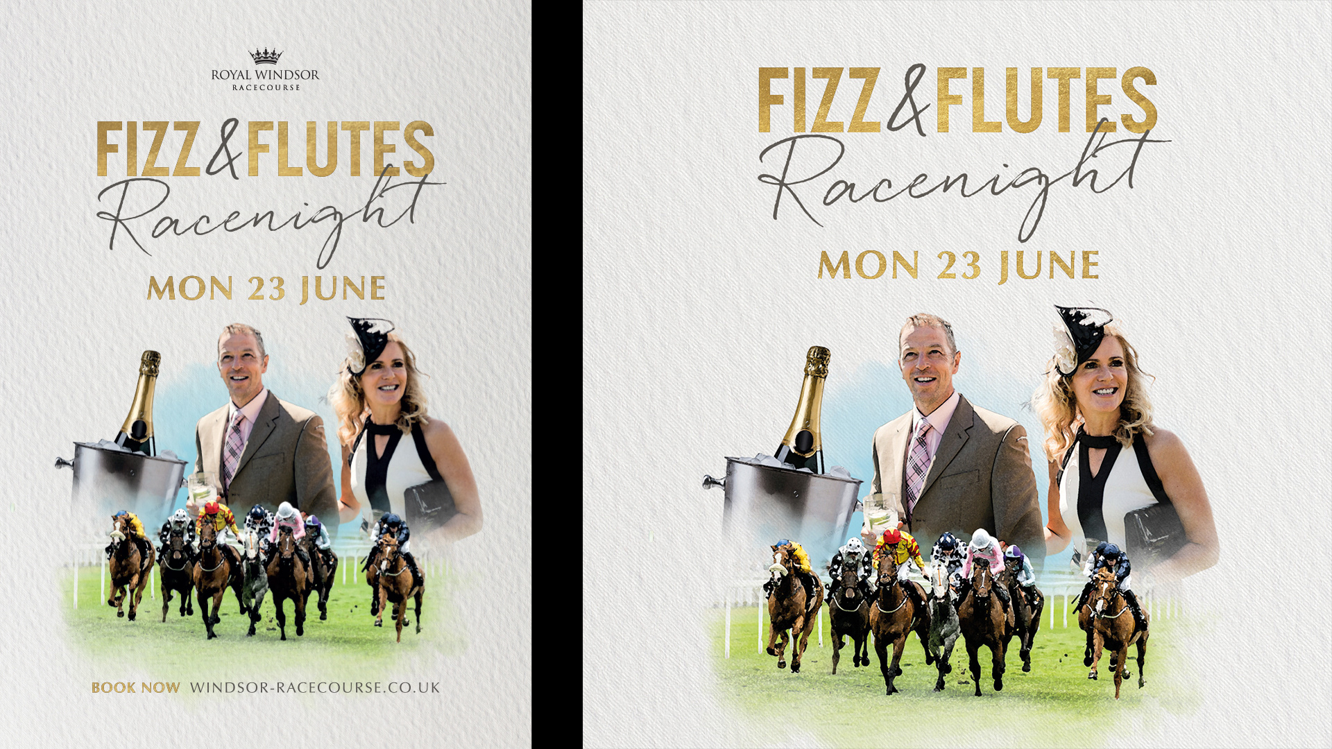 Fizz & Flutes Racenight concept (designed in collaboration with Arena Racing design team) and campaign rollout for Royal Windsor.