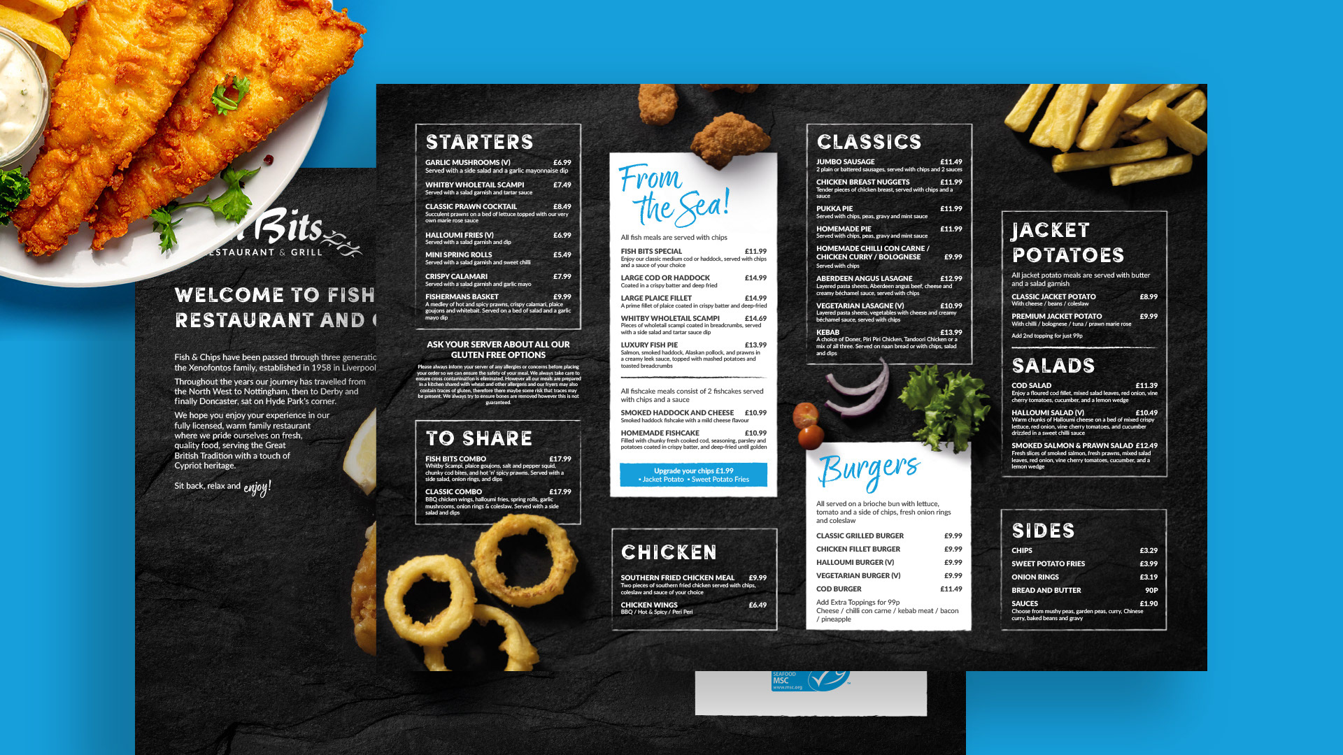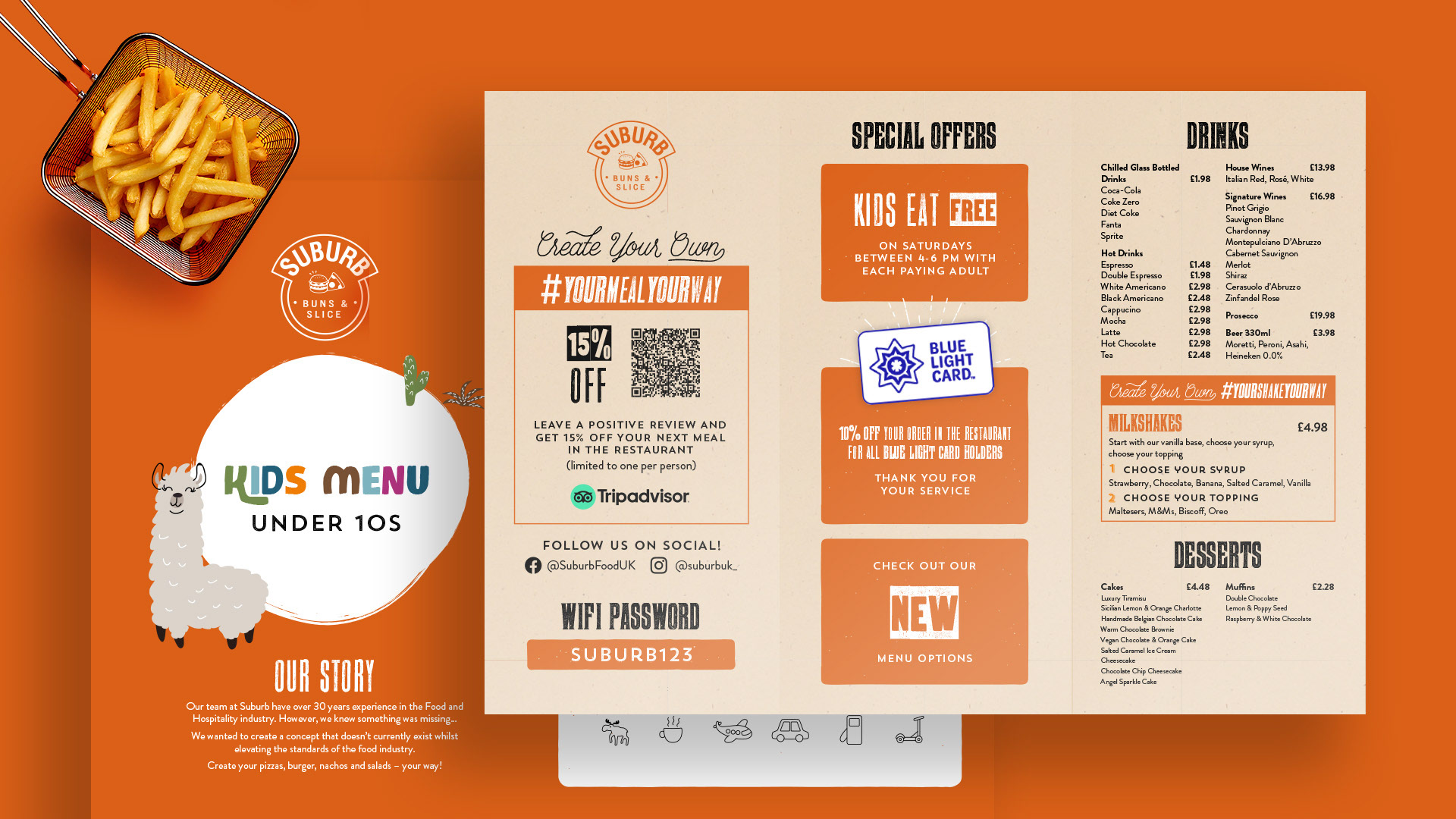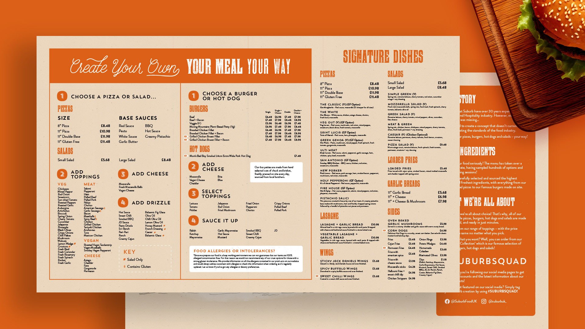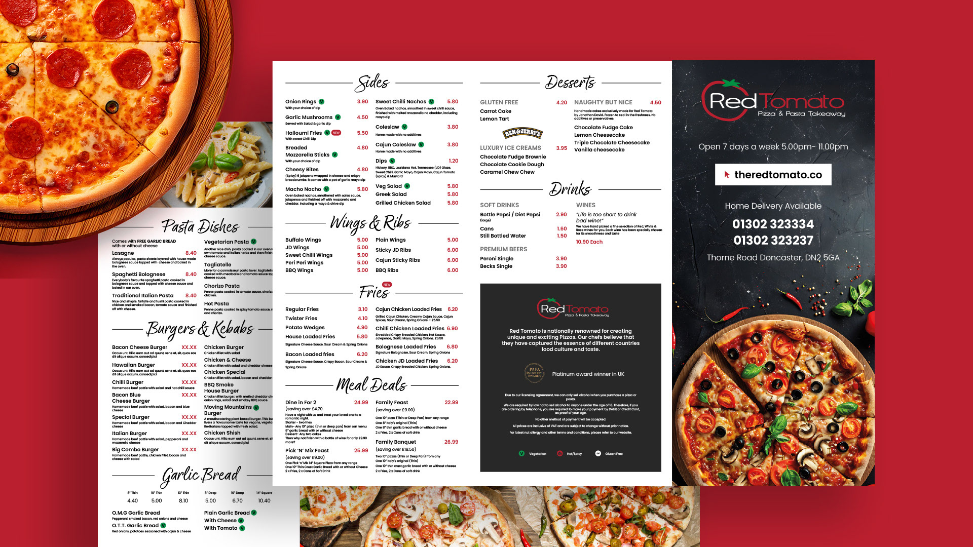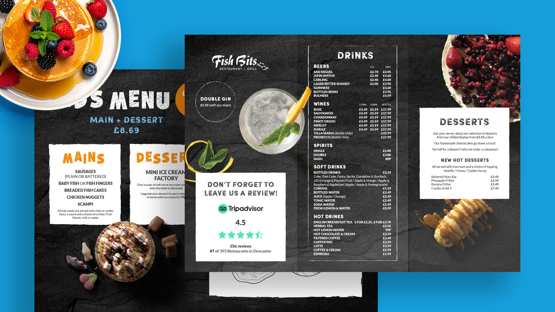A variety of menu designs designed in partnership with Moirae Creative.